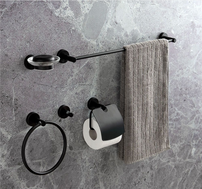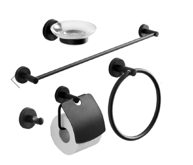 Il set di accessori bagno da 5 pezzi si caratterizza per una finitura nera opaca e raffinata, perfetta per completare con un tocco moderno la stanza da bagno. Questi pratici accessori a muro, occupano pochissimo spazio, ed è per questo che si rivelano veri alleati soprattutto nei bagni dalle dimensioni più ridotte.