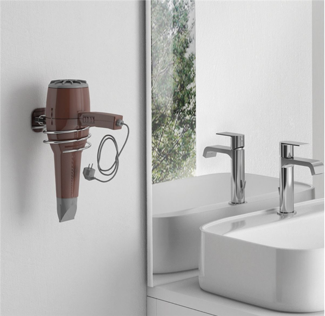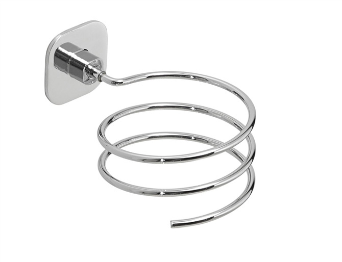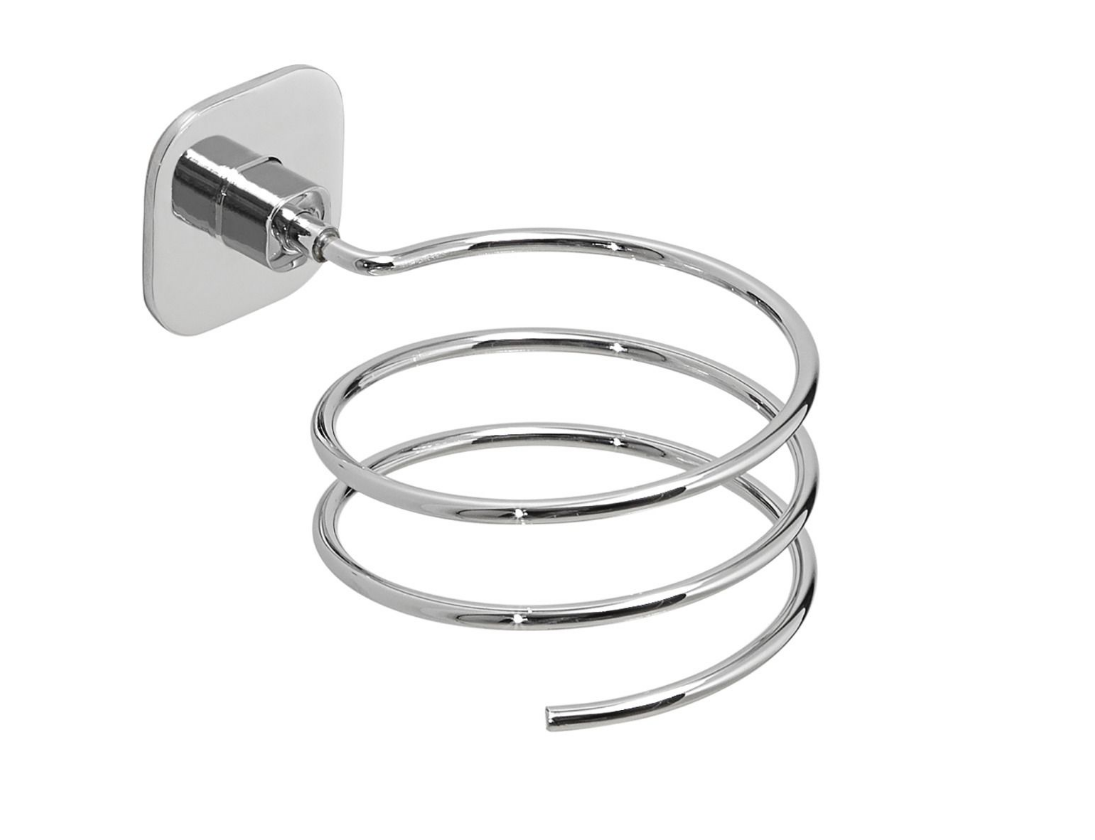 SPIRALE PORTA PHON ACCIAIO INOX CROMATO TIMO Nuova collezione bagno Timo in acciaio inox cromato a parete. Il suo fissaggio può essere fatto in due modi: con viti e tasselli a muro o con il biadesivo, montaggio semplice, pratico e comodo che ti permetterà di non sporcare il tuo bagno garantendoti un'ottima resa, grazie alla sua portata max di 3 Kg. Il design a spirale è pratico e maneggevole per estrarre e riporre il phon. Il phon è un oggetto che non ha mai un posto definito e, anche a causa del cavo, tende a creare disordine in qualsiasi armadietto o cassetto lo riponiamo. Grazie a questo supporto risolverete definitivamente il problema, e per avere il phon sempre a portata di mano, vi basterà fissarlo nelle vicinanze di una presa elettrica. abbiamo la soluzione per qualsiasi problema della vostra zona bagno assicurandovi qualità e convenienza. fissaggio: a muro con biadesivo o con viti larghezza:14 cm; altezza:7,3 cm profondità: 10 cm