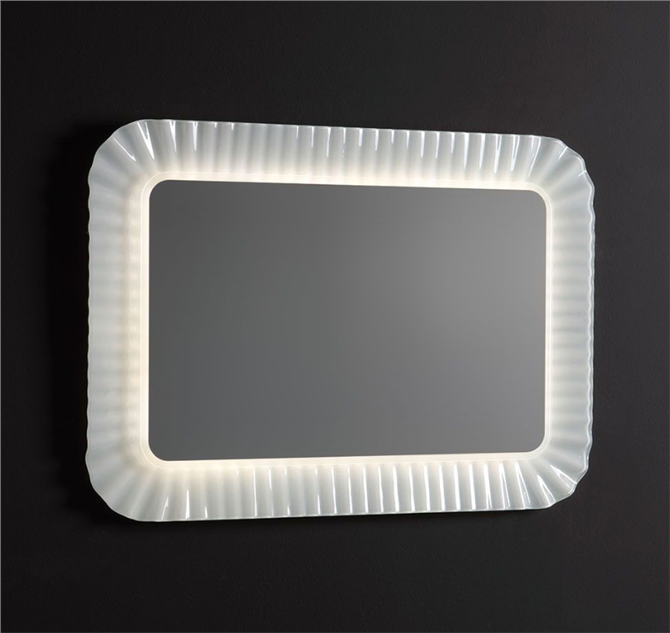 SPECCHIO CON CORNICE IN VETRO FUSO BIANCO ONDULATO E LUCE LED 94X68