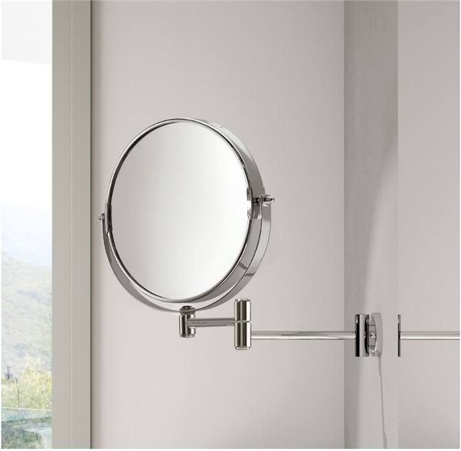 Lo specchio ingranditore a muro è un accessorio che può agevolarci in tante attività quotidiane come pettinarsi, radersi oppure truccarsi. Questo modello ha la struttura in ottone cromato, il braccio di supporto è estensibile e lo specchietto è ad inclinazione regolabile. Un accessorio moderno, curato nei dettagli che permette di rendere la stanza da bagno pratica, ma con stile.