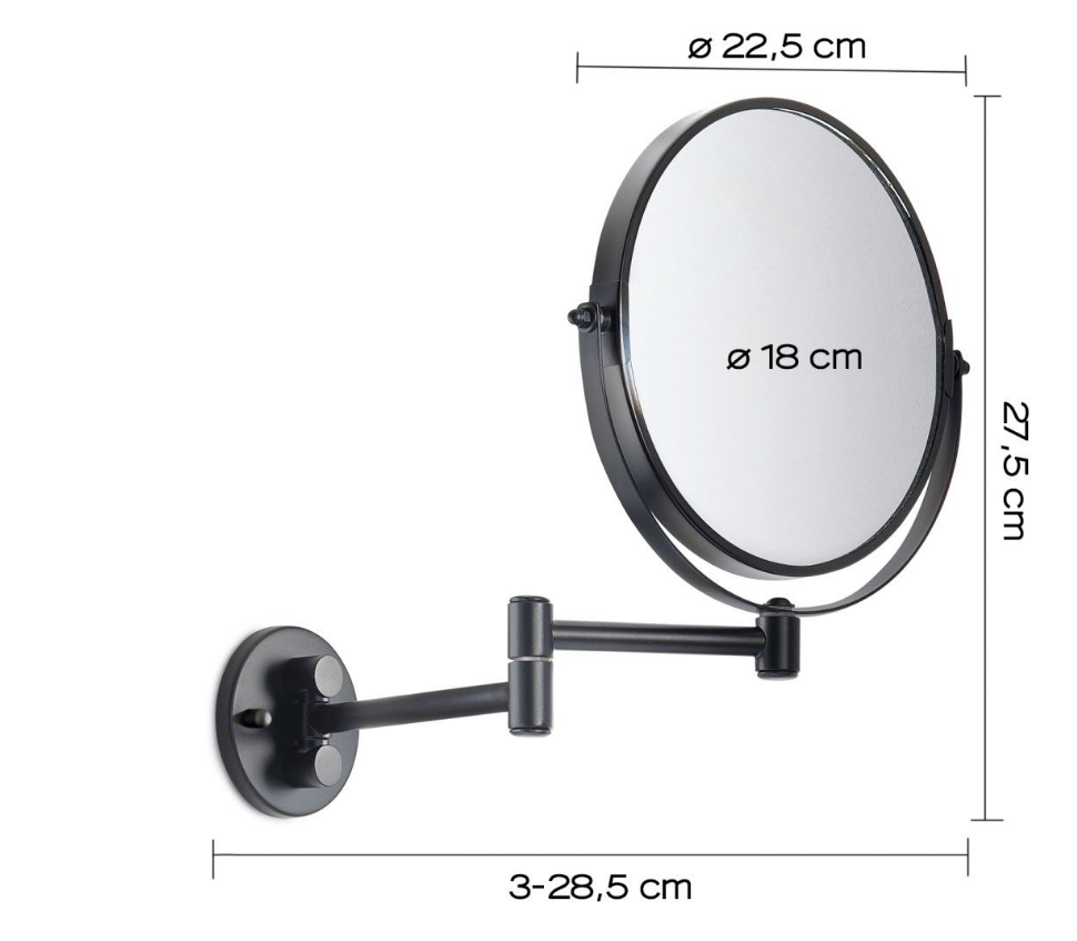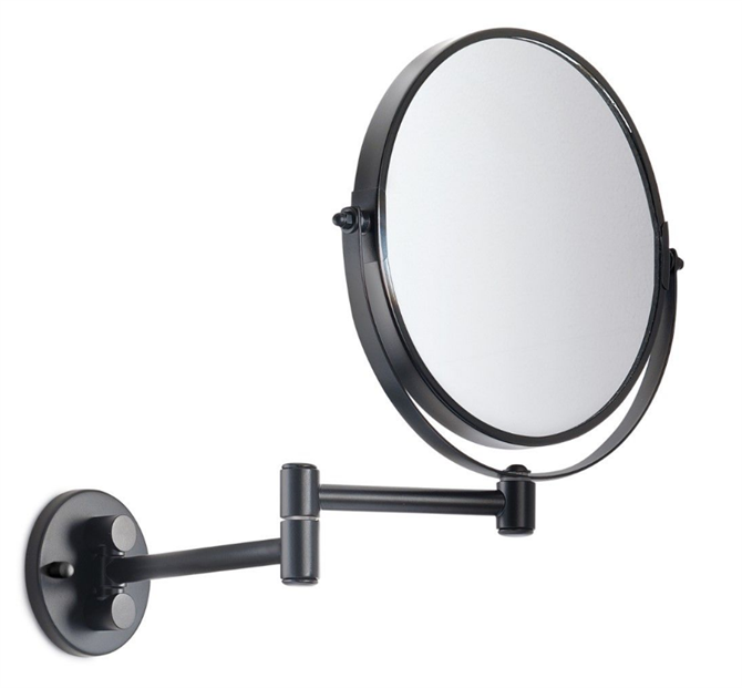 Lo specchio ingranditore da parete, agevola lo svolgimento di tante attività quotidiane, tra cui radersi o truccarsi. Questo modello da fissare alla parete con le viti ha la struttura in ottone nero opaco, è dotato di braccio estensibile e l'inclinazione dello specchio è regolabile.