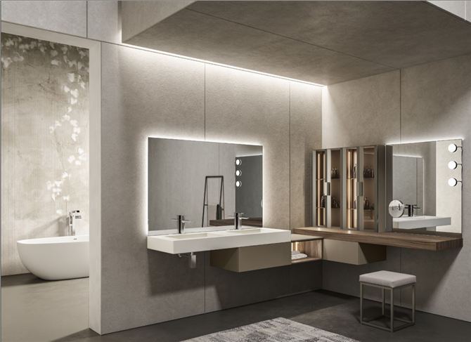 arredo-bagno in grado di suscitare un'intima compenetrazione tra l'ambiente