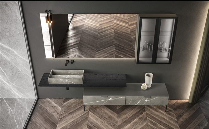 arredo-bagno in grado di suscitare un'intima compenetrazione tra l'ambiente