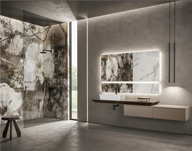 arredo-bagno in grado di suscitare un'intima compenetrazione tra l'ambiente