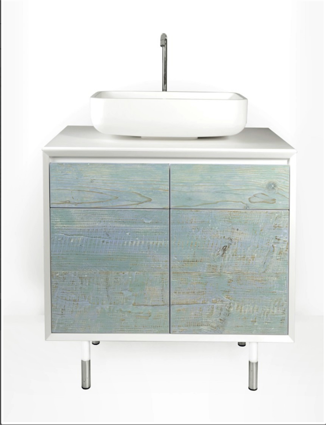 MOBILE DA BAGNO MATERA 2262/80 in legno lacca opaca con frontali cassetti e ante in abete di recupero e piano in Stonelight