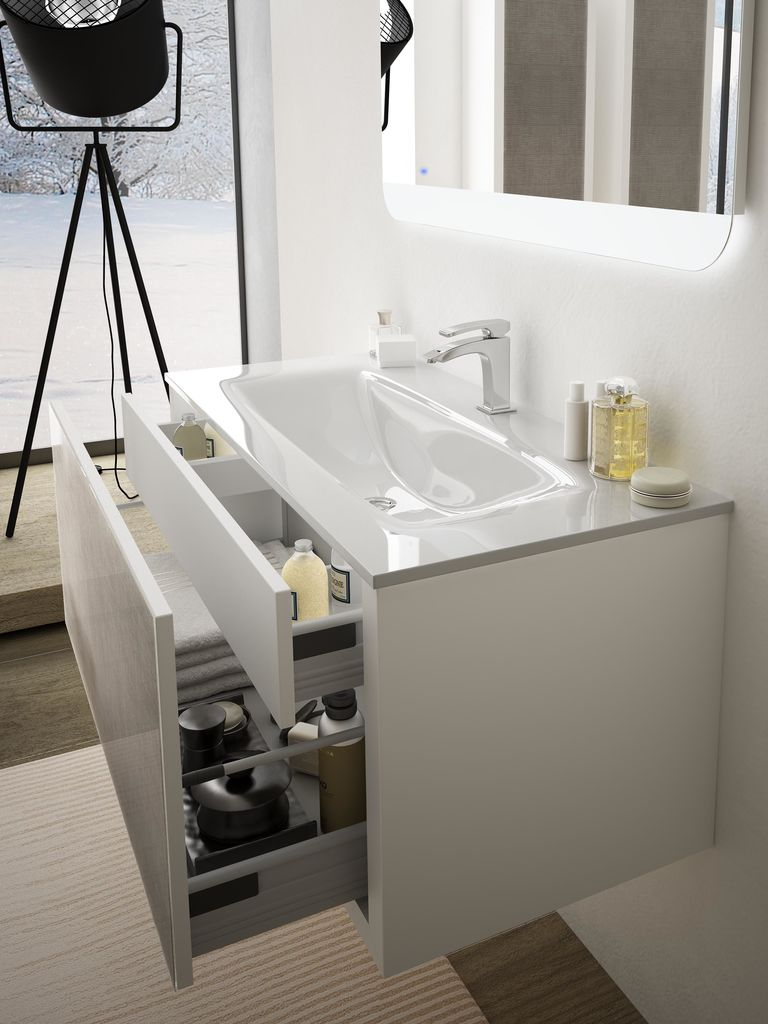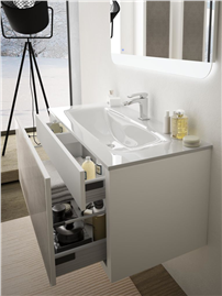 “Design elegante e praticità dei cassetti con sistema push e chiusura rallentata anche per gli spazi più piccoli grazie ad una linea di misure ridotte per rispondere con funzionalità ad ogni esigenza.