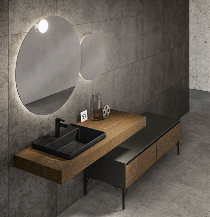 arredo-bagno in grado di suscitare un'intima compenetrazione tra l'ambiente arredato e coloro che lo vivono