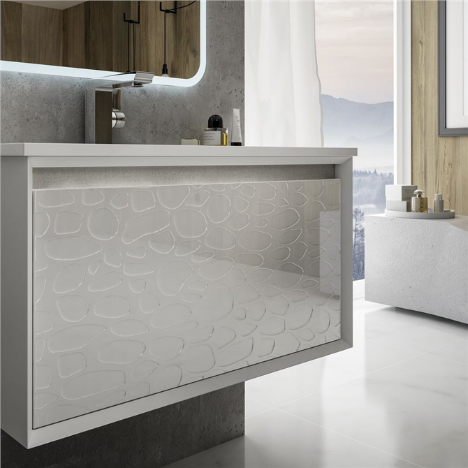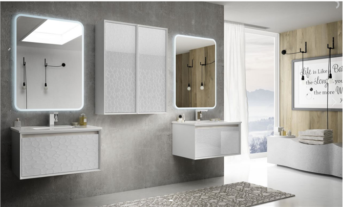 “Disponibile in tre eleganti e nuove finiture, la linea Venus interpreta al meglio il connubio stile e ricerca innovativa, grazie alla lavorazione a 45 gradi degli spigoli e delle ante fresate a luce. Per completare la soluzione di arredo, la linea si arricchisce anche di specchi contenitivi retroilluminati e dell’elegante finitura interna in tessuto.