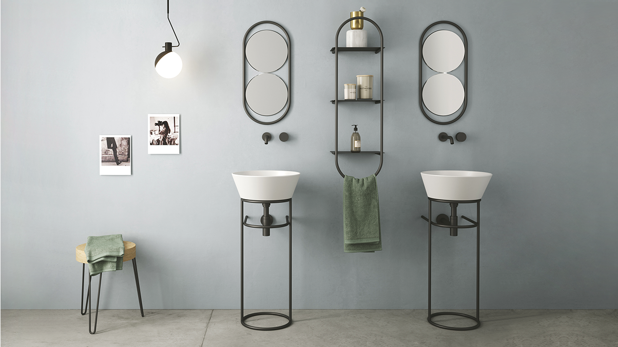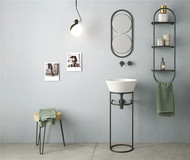 la morbida inclinazione delle pareti di wave, ultimissima collezione di lavabi simas, sposta la prospettiva conoscitiva delle forme geometriche che in un concetto di sempre in movimento, proprio come nelle onde mosse dal vento, si espongono a contaminazioni continue e cambiano in divenire. una nuova prospettiva di design che disloca il centro della figura, e quindi la forma stessa, che viene percepita in modo differente, arricchendone la visione primaria. wave si distingue per lo stile definito, morbido, dai tratti essenziali che esprimono un nuovo ‘classico non convenzionale’ da poter inserire in qualsiasi ambiente. di forma rotonda, ovale, quadrata, rettangolare, da appoggio o sospeso, la collezione di lavabi wave dispone di 13 nuance: bianco e nero lucidi, e nelle finiture matt bianco, nero, antracite, tela, cemento, mirto, moka, prugna, sabbia, pervinca e navy. anche con pilette in ceramica colorata. lavabi che possono essere sostenuti anche da una delicata struttura di metallo nero, di sezione rotonda, che riprende la forma del lavabo che ospita. il design della struttura in metallo nero viene riproposto negli specchi, coordinati alle forme dei vari lavabi, e nelle lampade, dando vita ad una serie di complementi che completano la collezione. Progetto furniture ' in continuum' si amplia l’offerta forniture di simas. due le essenze scelte, rovere e cemento, per queste inedite combinazioni dove la struttura in metallo nero, di sezione quadrata, viene sviluppata con ripiani in legno, da appoggio o sospesa, e corredata da ripiani o cassettoni, per accogliere anche i lavabi wave. linea che si completa con una serie di colonne di varie misure, da appoggio o sospese, anch’esse disponibili con ripiani e cassettoni.
