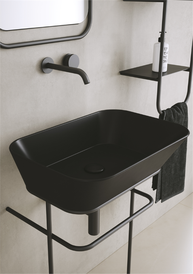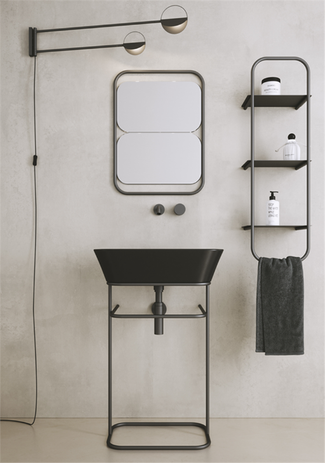 MOBILE DA BAGNO WAVE la morbida inclinazione delle pareti di wave, ultimissima collezione di lavabi simas, sposta la prospettiva conoscitiva delle forme geometriche che in un concetto di sempre in movimento, proprio come nelle onde mosse dal vento, si espongono a contaminazioni continue e cambiano in divenire. una nuova prospettiva di design che disloca il centro della figura, e quindi la forma stessa, che viene percepita in modo differente, arricchendone la visione primaria. wave si distingue per lo stile definito, morbido, dai tratti essenziali che esprimono un nuovo ‘classico non convenzionale’ da poter inserire in qualsiasi ambiente. di forma rotonda, ovale, quadrata, rettangolare, da appoggio o sospeso, la collezione di lavabi wave dispone di 13 nuance: bianco e nero lucidi, e nelle finiture matt bianco, nero, antracite, tela, cemento, mirto, moka, prugna, sabbia, pervinca e navy. anche con pilette in ceramica colorata. lavabi che possono essere sostenuti anche da una delicata struttura di metallo nero, di sezione rotonda, che riprende la forma del lavabo che ospita. il design della struttura in metallo nero viene riproposto negli specchi, coordinati alle forme dei vari lavabi, e nelle lampade, dando vita ad una serie di complementi che completano la collezione. Progetto furniture ' in continuum' si amplia l’offerta forniture di simas. due le essenze scelte, rovere e cemento, per queste inedite combinazioni dove la struttura in metallo nero, di sezione quadrata, viene sviluppata con ripiani in legno, da appoggio o sospesa, e corredata da ripiani o cassettoni, per accogliere anche i lavabi wave. linea che si completa con una serie di colonne di varie misure, da appoggio o sospese, anch’esse disponibili con ripiani e cassettoni.