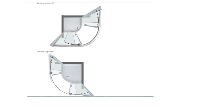 La gamma si distingue per l'ampiezza e la flessibilità del progetto. Le diverse configurazioni (quadrato, rettangolare, angolare e semicircolare) ne permettono l'installazione anche a centro stanza, in alternativa alle versioni ad angolo.