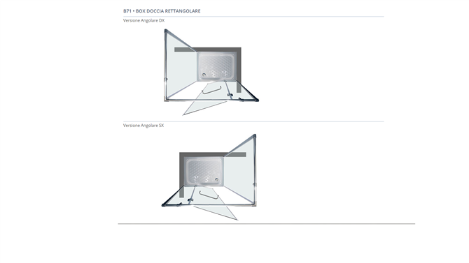 La gamma si distingue per l'ampiezza e la flessibilità del progetto. Le diverse configurazioni (quadrato, rettangolare, angolare e semicircolare) ne permettono l'installazione anche a centro stanza, in alternativa alle versioni ad angolo.