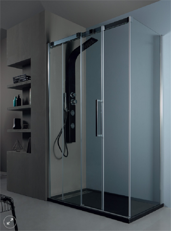 Le cabine doccia hanno in dotazione la speciale guarnizione integrale a tenuta stagna in gomma, le ante in cristallo temperato trasparente di sicurezza da 6 mm sono alte 2 metri  la chiusura è rallentata e hanno il trattamento anticalcare