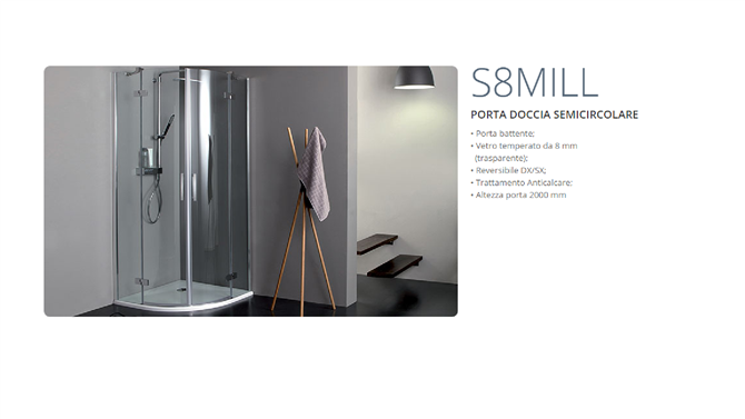 BOX DOCCIA SEMICIRCOLARE S8MILL 80X80 CRISTALLO 8 MM CROMO
