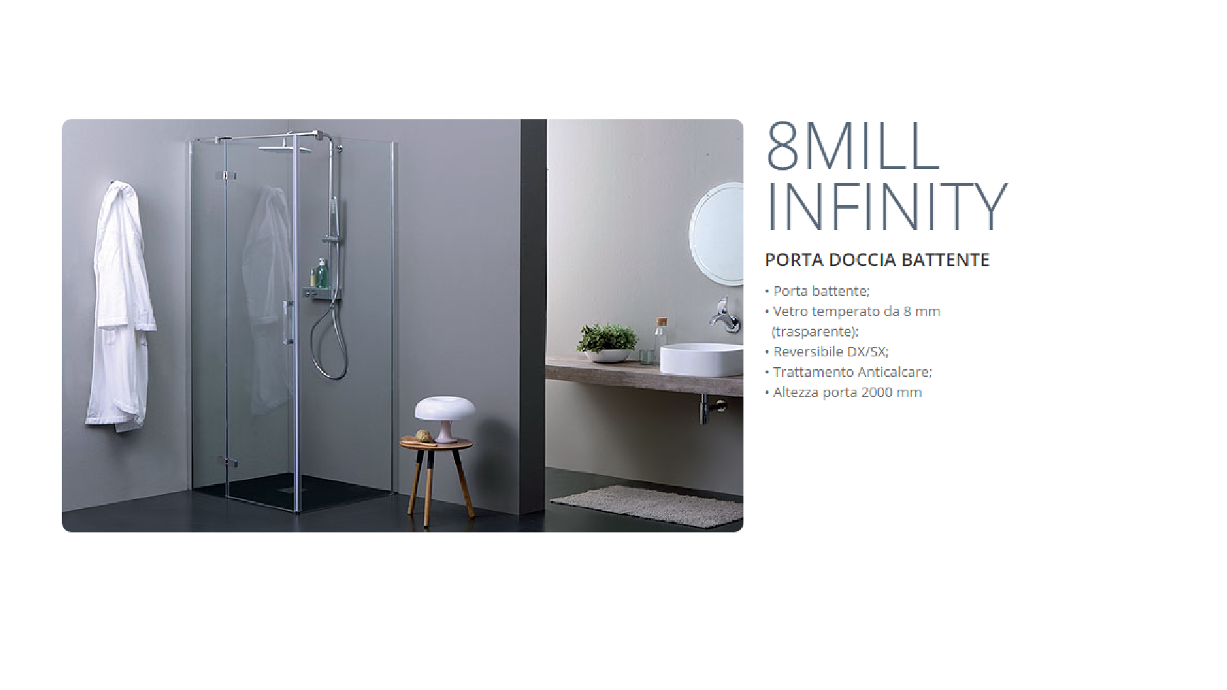 PORTA DOCCIA BATTENTE CM 90 8MILL INFINITY IN CRISTALLO 8MM CROMO