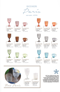 Quante volte abbiamo ospitato per cena delle persone importanti e non avevamo il giusto servizio di piatti e di bicchieri ? Oggi questo problema sparirà grazie al prezioso aiuto di Tiffani , la regina della tavola , vi proponiamo dei bellissimi servizi di bicchieri , per acqua , per vino, e thè . Voi potete scegliere tra giochi di trasparenze e delicati colori . Per una tavola ancora più d'effetto puoi scegliere di abbinare il servizio bicchieri Paris al servizio tavola Giulietta . il set è composto da n. 6 bicchieri acqua , n. 6 bicchieri vino o thè , verrano forniti ai clienti uno per colore (totale 6 colori ) soltanto per la colorazione trasparente sono disponibili set da 6 bicchieri vino o acqua soltanto trasparenti