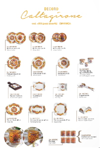 Piatti piani,piatti fondi e piatti frutta o dolce sono disponibili in due diversi decori il decoro uomo e il decoro donna , il servizio da 6 persone è composto da 3 posti tavola con la figura dell'uomo e 3 posti tavola con la figura della donna