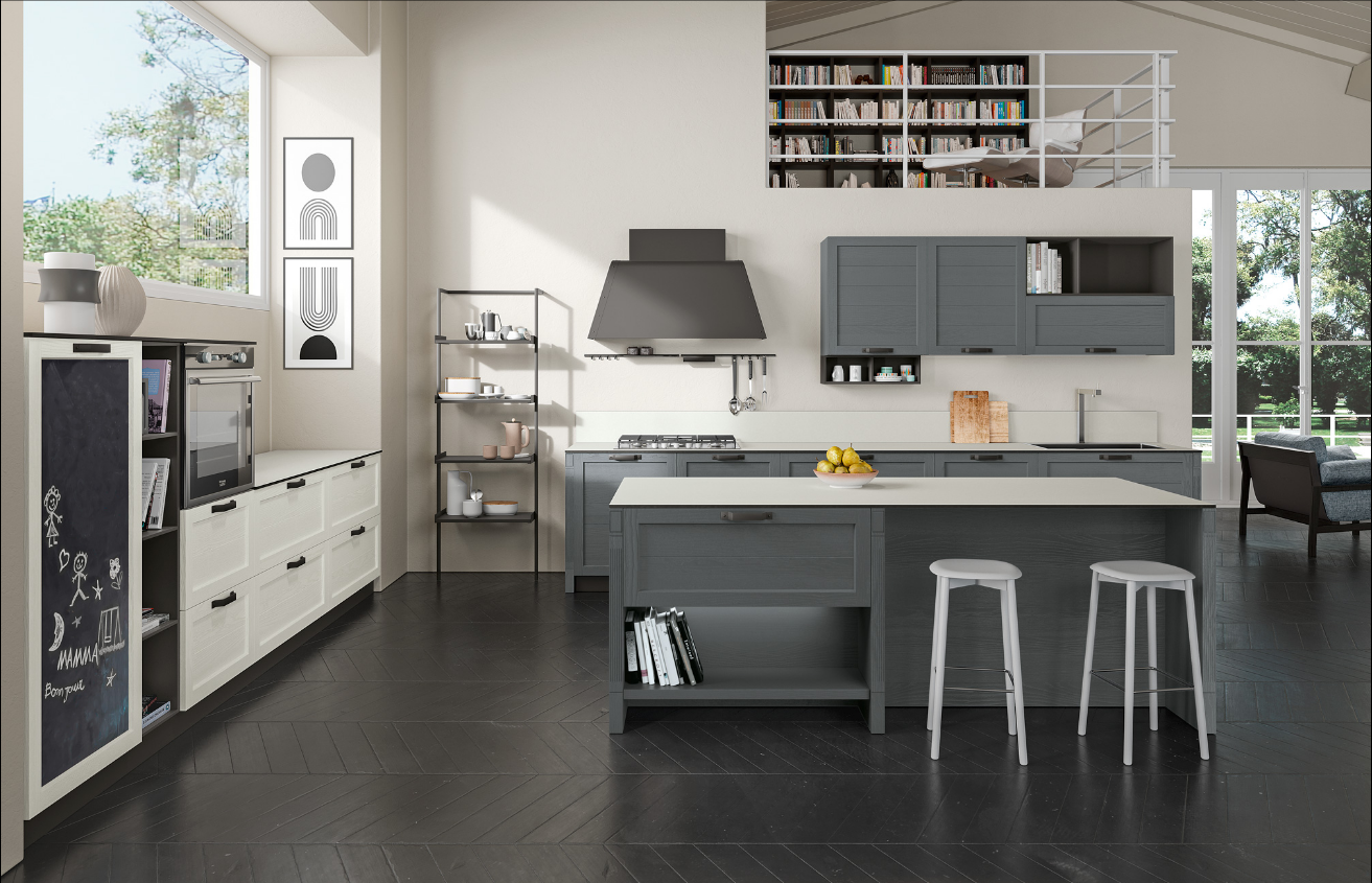 CUCINA CLASSICA MODELLO DOVER LA CUCINA SI VESTE DI UNO STILE COSMOPOLITA Atmosfere informali per ambienti autentici. L’arredo cucina si rinnova con personalità, protagonisti i materiali elegantemente vissuti, che donano un mood caldo, poetico e accogliente, soluzioni ergonomiche, vasta scelta di finiture e maniglie permettono di avere la cucina dei tuoi sogni. Il bianco delle scogliere, il fragore dell’oceano, il calore di una cucina accogliente che parla di te.L’anta legno frassino a telaio con e senza doghe, materiali caldi, toni pastello, dettagli ricercati.Dover esalta la tradizione con un elegante mood contemporaneo.