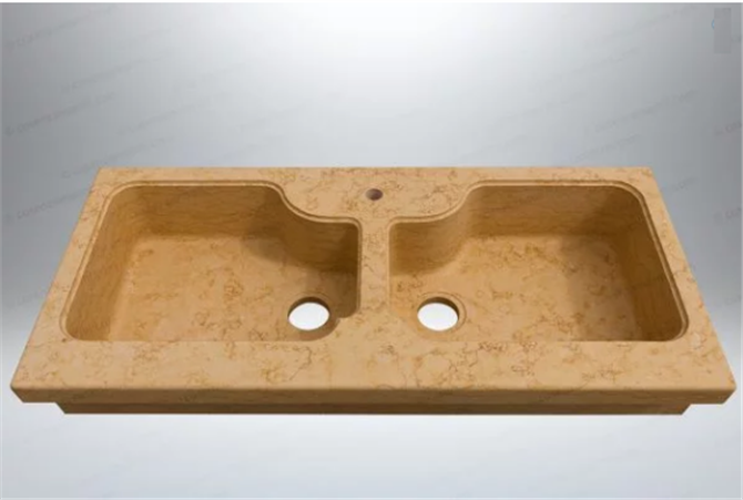 LAVELLO IN MARMO DOPPIA VASCA DA CM 120X60X20 REALIZZATO IN MARMO GIALLO CLEOPATRAcon vasca e angoli ARROTONDATI in pietra forme squadrate o sinuose, curve, spezzati, spessori variabili e colorazioni miste: potete avere tutto questo scegliendo un lavello in marmo incassato oppure d’appoggio. Forme uniche e finiture speciali donano all’ambiente un aspetto magico, creando ambienti di pace e eleganza. Stanze come il bagno o la cucina trovano il loro perfetto compagno estetico nel marmo.