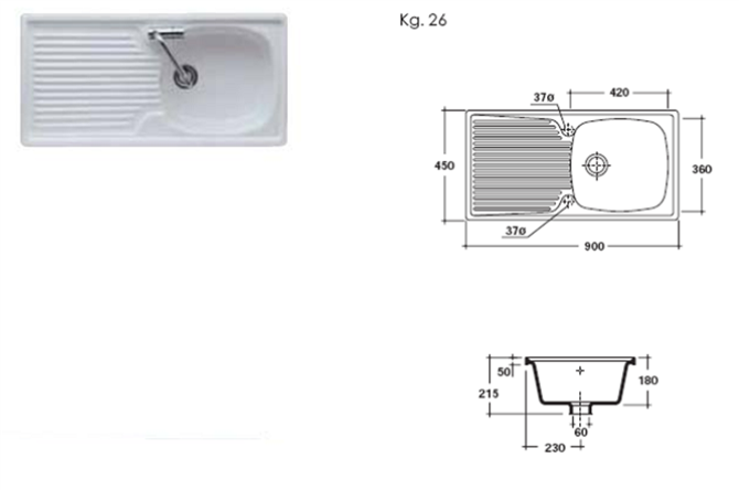 LAVELLO PORCELLANA 90 REVERSIBILE DA MOBILE