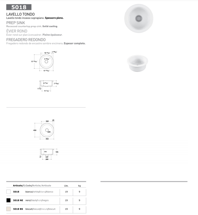 LAVELLO PORCELLANA CM 45 TONDO 5018 DOPPIO MONTAGGIO A SPESSORE PIENO UTILIZZABILE NELLA VERSIONE D'APPOGGIO O AD INCASSO Un lavello cucina che unisce in un solo componente d’arredo semplicità e versatilità. Questo lavello ha dimensioni pari a 75 cm di lunghezza x 50 cm di larghezza x 25 cm di altezza e può essere incassato all’interno di supporti di vario genere; il colore bianco, infatti, rende questo lavello adatto sia all’interno di una cucina moderna e innovativo sia in un ambiente più classico e tradizionale. Non vengono venduti con il lavandino da cucina né la rubinetteria né gli accessori, di conseguenza tramite l’accostamento di questi altri componenti d’arredo si può andare a definire lo stile del lavello stesso. Oltre ad essere versatile, il lavello cucina incasso bianco assicura la massima praticità e funzionalità; innanzitutto, la ceramica rappresenta una garanzia di qualità e durata nel tempo. La doppia vasca, in secondo luogo, permette di lavare comodamente i piatti insaponandoli in una vaschetta e risciacquandoli nell'altra per poi lasciarli ad asciugare sul pratico scolapiatti a destra dello stesso lavello da cucina.