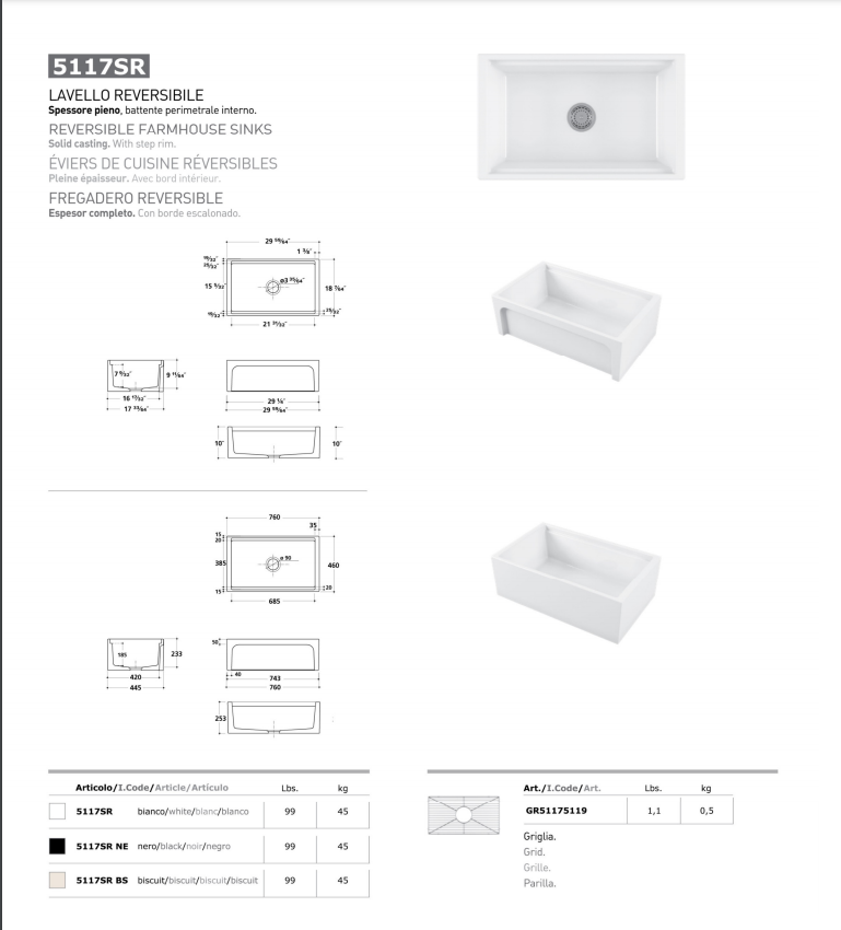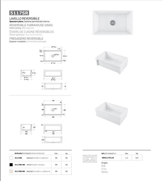 LAVELLO PORCELLANA CM 76 REVERSIBILE ART. 5117 BIANCO Un lavello cucina che unisce in un solo componente d’arredo semplicità e versatilità. Questo lavello ha dimensioni pari a 75 cm di lunghezza x 50 cm di larghezza x 25 cm di altezza e può essere incassato all’interno di supporti di vario genere; il colore bianco, infatti, rende questo lavello adatto sia all’interno di una cucina moderna e innovativo sia in un ambiente più classico e tradizionale. Non vengono venduti con il lavandino da cucina né la rubinetteria né gli accessori, di conseguenza tramite l’accostamento di questi altri componenti d’arredo si può andare a definire lo stile del lavello stesso. Oltre ad essere versatile, il lavello cucina incasso bianco assicura la massima praticità e funzionalità; innanzitutto, la ceramica rappresenta una garanzia di qualità e durata nel tempo. La doppia vasca, in secondo luogo, permette di lavare comodamente i piatti insaponandoli in una vaschetta e risciacquandoli nell'altra per poi lasciarli ad asciugare sul pratico scolapiatti a destra dello stesso lavello da cucina.