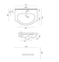 lavabo consolle semincasso integrale cm 71  bianco lucido monoforo (predisposizione tre fori). Disponibile anche da 86, 96
