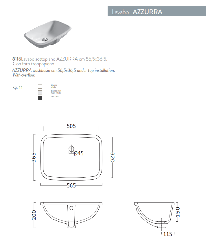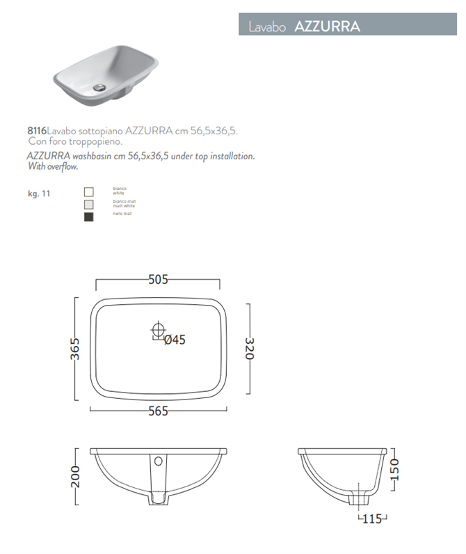 SANITARI LAVABO SOTTOPIANO AZZURRA