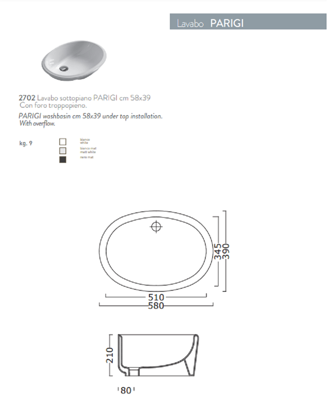 SANITARI LAVABO SOTTOPIANO PARIGI