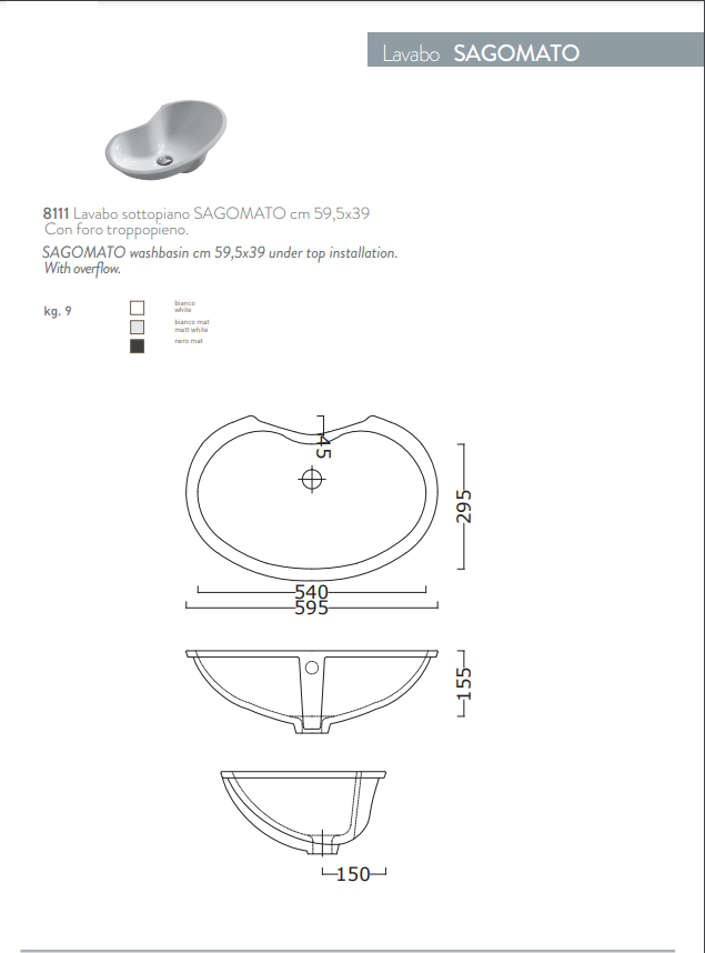 SANITARI LAVABO SOTTOPIANO SAGOMATO