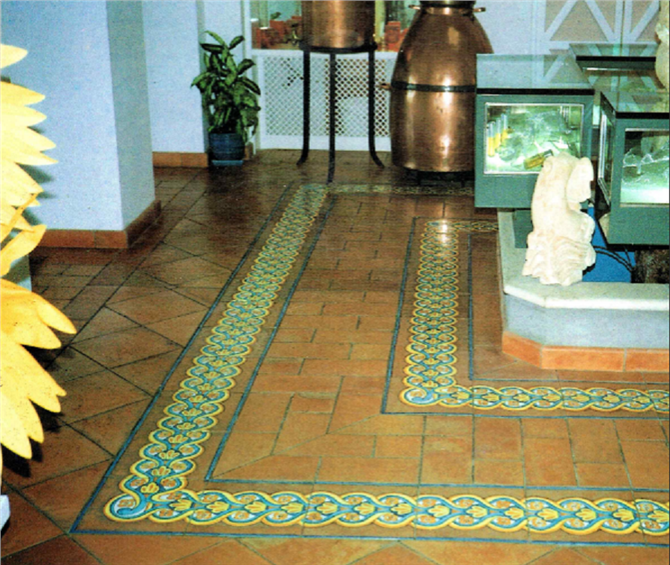 PAVIMENTO COTTO SICILIANO 15X30 CON INSERTI DECORATI