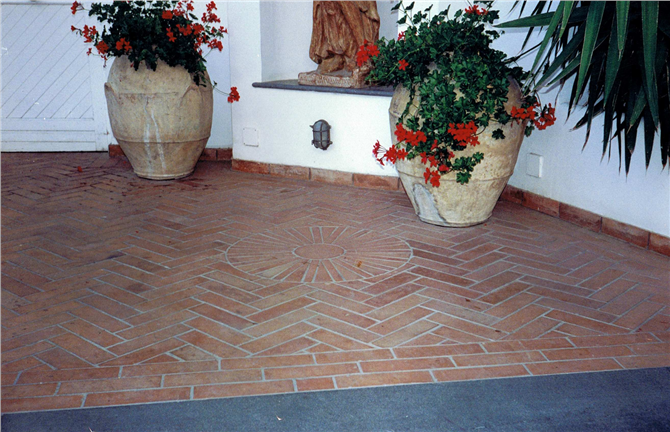 PAVIMENTO IN COTTO FATTO A MANO LOSANGA CON QUADROTTA
