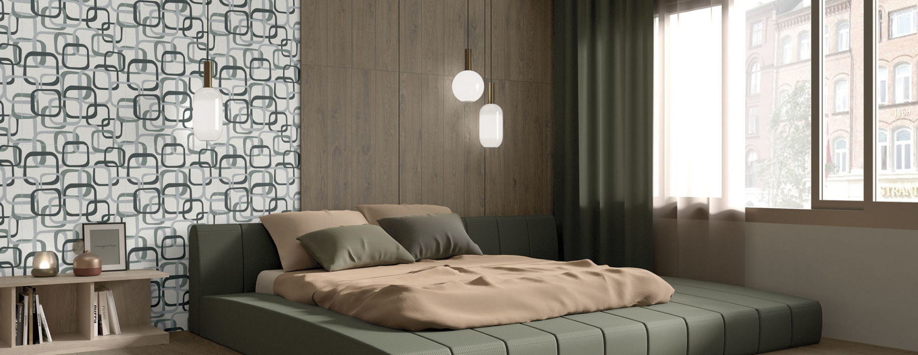 Pavimenti e rivestimenti anni 70 realizzati in 3dD, L'effetto 3d dona un effetto ottico di maggiore profondità all'ambiente. E' una dichiarazione d'amore per i tempi passati. Questi modelli nostalgici innescano ricordi e preservano uno stile di vita, un'epoca o una convinzione personale.