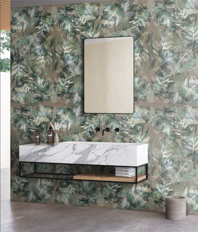 L’ARTE DI DECORARE E DI PROGETTARE Irrompe la verde freschezza di grandi foglie esotiche nello stile Contemporaneo. Una versatilità espressiva che aggiunge vigore ai rivestimenti di ogni contesto sia pubblico che privato, dove al progetto formale si aggiunge l’esigenza profonda di connessione alla natura