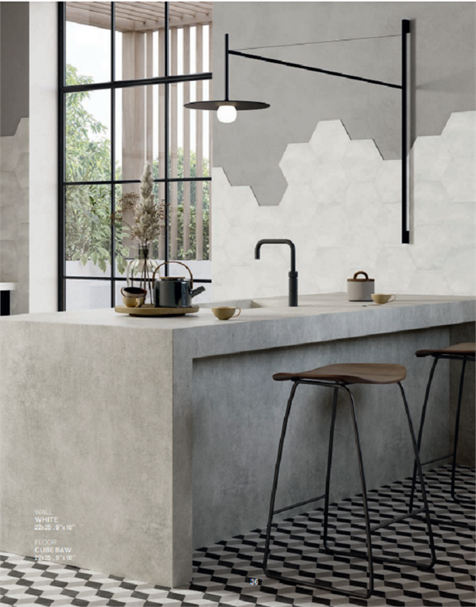 Un’ampia antologia di decori esagonali, che trae ispirazione dalle piastrelle artigianali europee e mediterranee fino ad arrivare ai motivi geometrici e moderni, creano una serie completa offrendo soluzioni per ogni spazio.