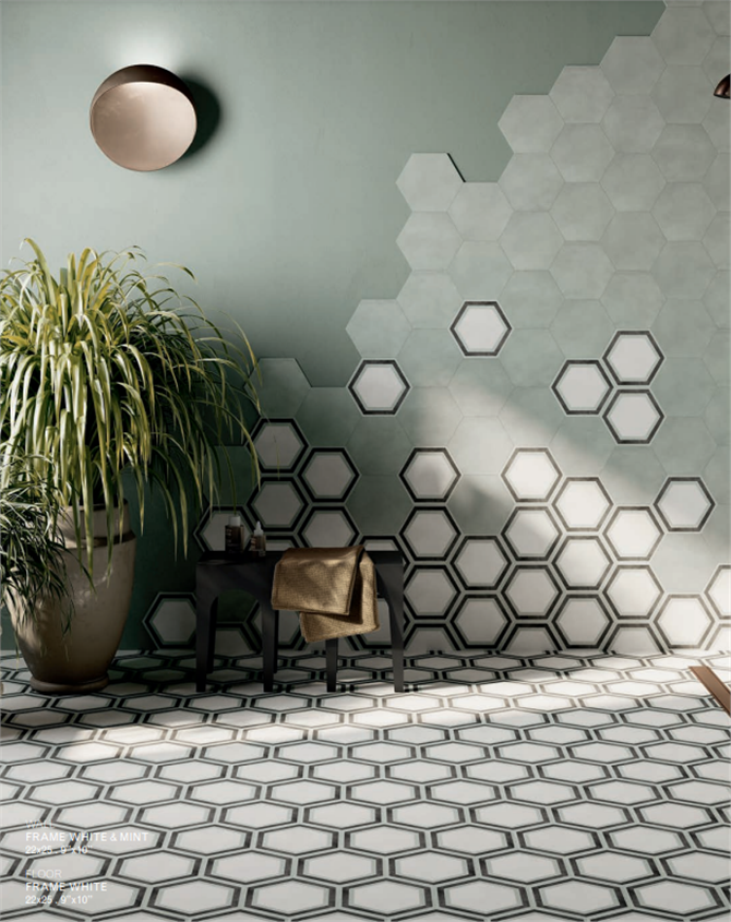 Un’ampia antologia di decori esagonali, che trae ispirazione dalle piastrelle artigianali europee e mediterranee fino ad arrivare ai motivi geometrici e moderni, creano una serie completa offrendo soluzioni per ogni spazio.