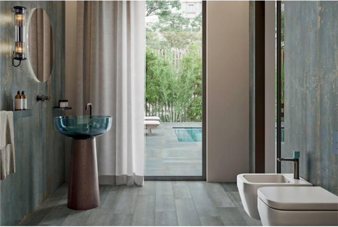 OXIDE è la superficie dalla spiccata personalità “industrial” che sorprende per il realismo con cui riproduce le sensazioni tattili e visive dei metalli ossidati, a partire dalle sfumature cangianti di colore, fino ai riflessi lucido-opachi, che danno al prodotto una connotazione quasi tridimensionale. Una gamma composta da 5 diverse colorazioni, ciascuna pensata per creare spazi dal carattere non convenzionale e sperimentare con abbinamenti inediti e materiali a contrasto.