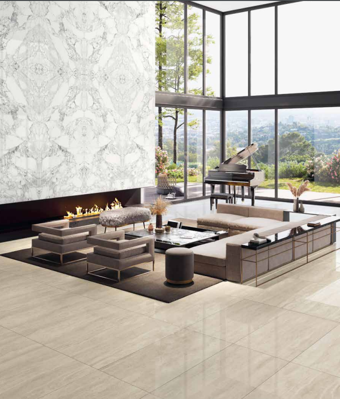 La superficie lappata si declina in molteplici formati: 60×120, 120×120 e 1270×270, 163X324 e differenti spessori (6 e 9 mm).