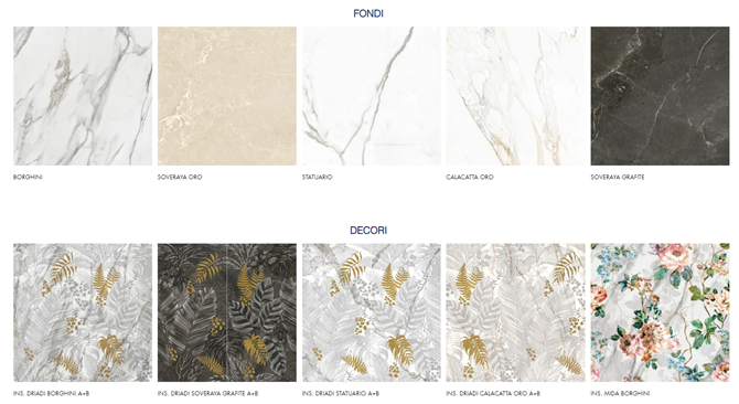 L’estetica del marmo prescinde ogni nuova ricerca materica nell’ambito dell’interior design. Rimane sempre attuale per uno stile lussuoso e al di fuori delle mode del momento. Ha affascinato artisti, scultori e progettisti sin dalle origini della cultura greca e romana quando alle antiche divinita’ venivano innalzati templi imponenti e modellate statue meravigliose. La collezione Mito replica le grafiche dei piu’ classici marmi conosciuti come Statuario, Borghini e Calacatta Oro e crea anche tonalita’ originali come Soveraya Grafite e Oro per spunti progettuali inediti. Per rendere ancora piu’ preziosi e unici gli ambienti, proponiamo le favolose decorazioni Mida e Driadi realizzate con oro e lustri. La prima è un’esplosione di fiori che abbiamo immaginato appartenere al giardino dorato del mitico re Mida, mentre Driadi è un omaggio alle mitiche ninfe che vivevano nei boschi e che incarnavano la forza e il rigoglio vegetativo.