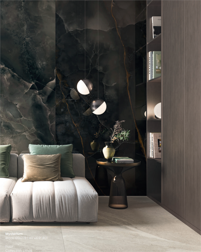 Mysterium rappresenta un'ode all'incanto e all'eleganza dell'onice.Il nome evoca il fascino dell'ignoto e il richiamo dell'enigma. Queste superfici ceramiche, con la loro texture e sfumature ispirate all'onice, portano con sé un senso di mistero e curiosità, un invito a scoprire ciò che si cela al di là delle apparenze. L'ombra, la luce e la forza delle venature creano un gioco di contrasti e profondità, in una serie dalle tonalità più calde e naturali a quelle più audaci e moderne, che trasformano ogni superficie in un'opera d'arte in continua evoluzione. disponibile in 6 colorazioni e 2 formati 60x120 120x278
