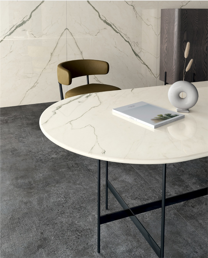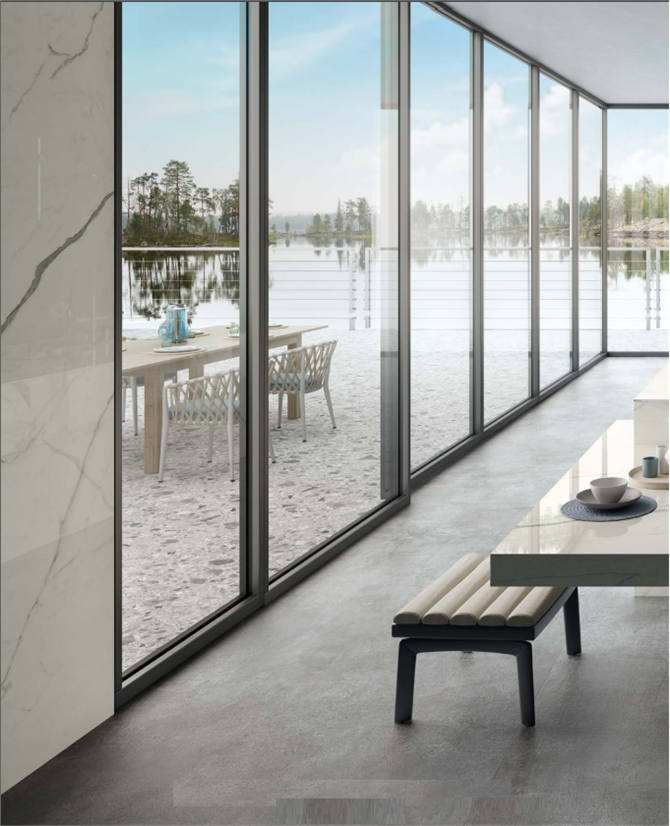 lastre: marmi, pietre e cementi, in gres porcellanato nelle quali la materia, i colori e le superfici giocano negli ambienti, defininendo nuovi confini visivi e offrire nuove prospettive di utilizzo nell’interior design. Pavimenti, rivestimenti, facciate esterne e complementi di
