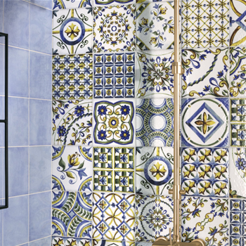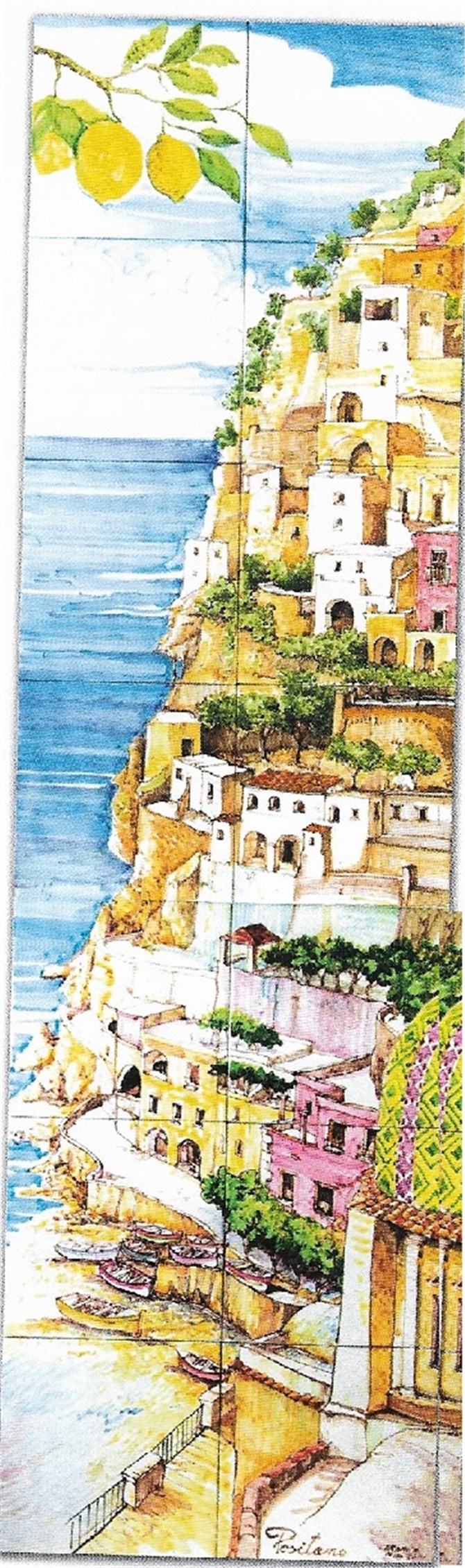 VIETRI PANNELLO POSITANO ANTICHE RIGGIOLE 40X140 UNA COLLEZIONE REALIZZATA SU MATTONELLA 10X10 DIPINTA MANO