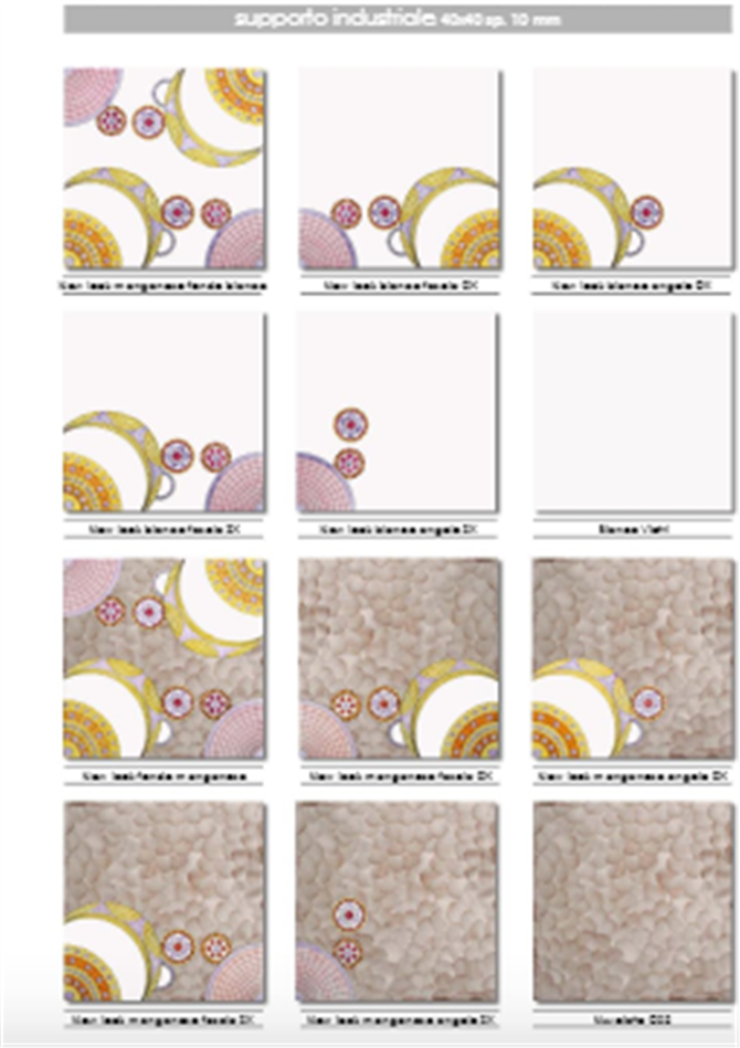 (Ma­ri­na blu, Re­gi­nel­la, For­cel­la, Pie­di­grot­ta) ven­go­no rea­liz­za­ti nel for­ma­to 40­x40 per pa­vi­men­ta­re gran­di sa­lo­ni, ma so­prat­tut­to per esal­ta­re i no­stri de­co­ri su un for­ma­to di mag­gio­re re­spi­ro.