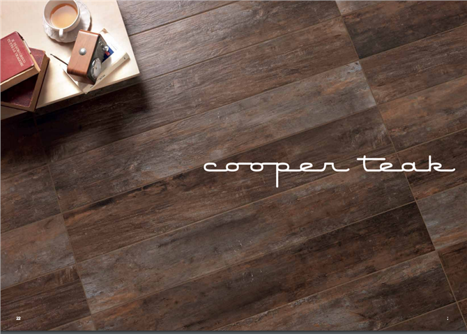 PAVIMENTO COOPER TEAK 20X120 un pavimento gres porcellanato in massa rettificato effetto legno Il fascino delle origini, delle vecchie case costruite con materiale grezzo che profuma ancora di bosco. Il carattere deciso di un movimento grafico intrigante che diventa protagonista dell’ambiente. Cooper sorprende per la ricchezza progettuale che nasce da queste ispirazioni. L’aspetto vissuto permette realizzazioni di tendenza mantenendo un spirito caldo, vivo ed accogliente strizzando l’occhio ad un passato non così lontano.