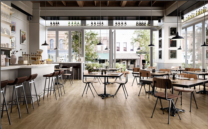 La versatilità e le dimensioni equilibrate del formato a doghe 20x120 consentono soluzioni di posa originali anche a parete, valorizzate dalla smussatura delicata dei lati lunghi rettificati, che evidenzia la leggera tridimensionalità del prodotto, aumentandone la pulibilità.