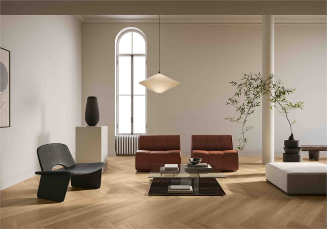 PAVIMENTO OAKTHREE MID 20X120 pavimento gres porcellanato in massa rettificato L’età adulta Mid rappresenta la maturità, nei toni, nei primi solchi della pelle nell’espressione, più marcata, segnata da situazioni di vita vissuta Un’unica essenza di legno, la quercia, il cui aspetto, delineato dal tempo, si modifica, si evolve, definendo tre stili, tre estetiche diverse, che si sposano, si abbinano perfettamente a momenti della vita, fissati nella memoria di instanti indelebili. L’età giovanile - Young - è racchiusa in stilemi che richiamano la freschezza, la spensieratezza, di luci, di colori; pochi segni del tempo sulla “pelle”, pochi contrasti, più uniformità, più leggerezza estetica e cromatica, più chiarezza. L’età adulta - Mid - rappresenta la maturità, nei toni, nei primi solchi della “pelle”, nell’espressione, più marcata, segnata da situazioni di vita vissuta. L’età senile - Old - racchiude in sé il senso dell’esperienza, tutta la bellezza della conoscenza, nell’aspetto, nello sguardo, nella “pelle”, che sembrano raccontare storie affascinanti senza bisogno di parole. Un unico soggetto, tre epoche, infinite sensazioni per arricchire, vestire la vita di tutti i giorni di ognuno di noi. In modo diverso e personale. 𝘿𝙀𝙎𝙄𝙂𝙉 𝙉𝙊𝙏𝙀𝙎 - 𝙞 𝙣𝙤𝙨𝙩𝙧𝙞 𝙘𝙤𝙣𝙨𝙞𝙜𝙡𝙞 𝙥𝙚𝙧 𝙞 𝙫𝙤𝙨𝙩𝙧𝙞 𝙖𝙢𝙗𝙞𝙚𝙣𝙩𝙞 Immaginate un ambiente dove la luminosità e lo spazio si fondono per creare un’atmosfera che respira. I mobili, disposti con cura a distanza l'uno dall'altro, regalano una sensazione di libertà, e lasciano che la luce naturale attraversi ogni angolo. Il pavimento effetto legno diventa protagonista, riflettendo luci e ombre che variano durante il giorno, trasformando lo spazio in continuo cambiamento. Consiglio di stile: la posa a spina di pesce dona ulteriore e movimento all’ambiente, mentre l’accostamento di materiali diversi arricchisce e personalizza lo spazio.