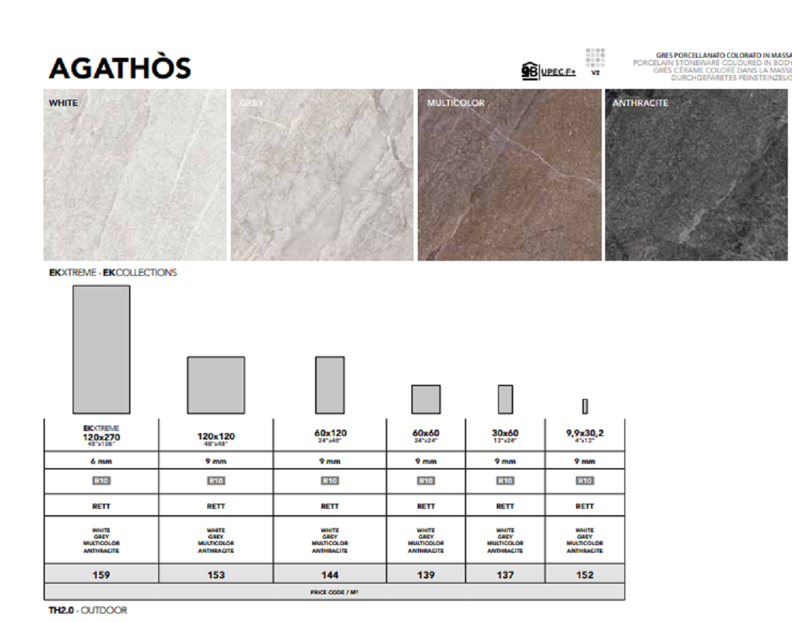 La superficie  si declina in molteplici formati: 60×120, 120×120 e 127×270, 163X324 e differenti spessori (6 e 9 mm).