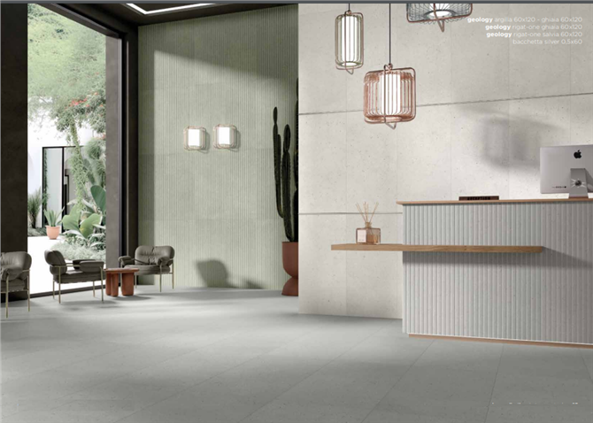 Nuova collezione Geology in gres porcellanato; effetto pietra che stimola la fantasia ,dallo stile senza tempo,caratterizzata da inclusioni di fossili lievemente accennati estetica raffinata , riproduce con precisione l'eleganza della pietra naturale le tonalità creano un'atmosfera accogliente , i colori Argilla, Ghiaia, Salvia, Sabbia, Terra e Cotto offrono la possibilità di personalizzare gli spazi I formati 60x120 , 60x60 , e 30x60 si prestano alla realizzazione di ambientazioni originali