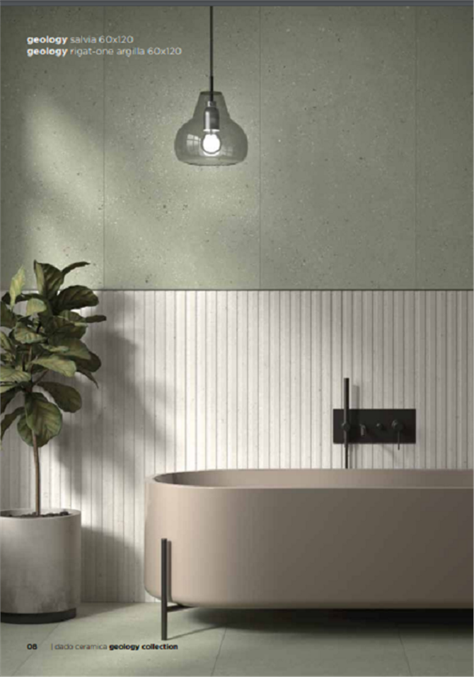Nuova collezione Geology in gres porcellanato; effetto pietra che stimola la fantasia ,dallo stile senza tempo,caratterizzata da inclusioni di fossili lievemente accennati estetica raffinata , riproduce con precisione l'eleganza della pietra naturale le tonalità creano un'atmosfera accogliente , i colori Argilla, Ghiaia, Salvia, Sabbia, Terra e Cotto offrono la possibilità di personalizzare gli spazi I formati 60x120 , 60x60 , e 30x60 si prestano alla realizzazione di ambientazioni originali