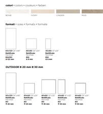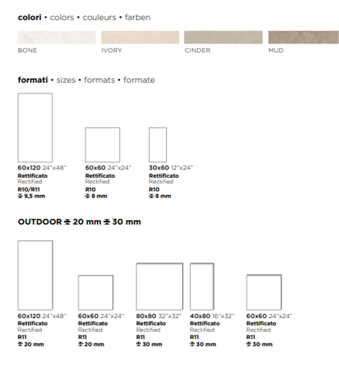 Proposta in quattro differenti tonalità, la nuova collezione Serica di Dado Ceramica fa emergere le minuscole macchie tipiche della pietra ispiratrice attraverso lastre di gres porcellanato, con finitura R10 per interni e R11 esterni in spessore 20 e 30 mm, che aprono nuove prospettive progettuali nel mondo dell'architettura e dell'abitare. I decori coordinati Rigatino e Spaccatella danno vita a soluzioni compositive dal forte impatto estetico. Disponibile in tre formati 60x120, 60x60 30x60
